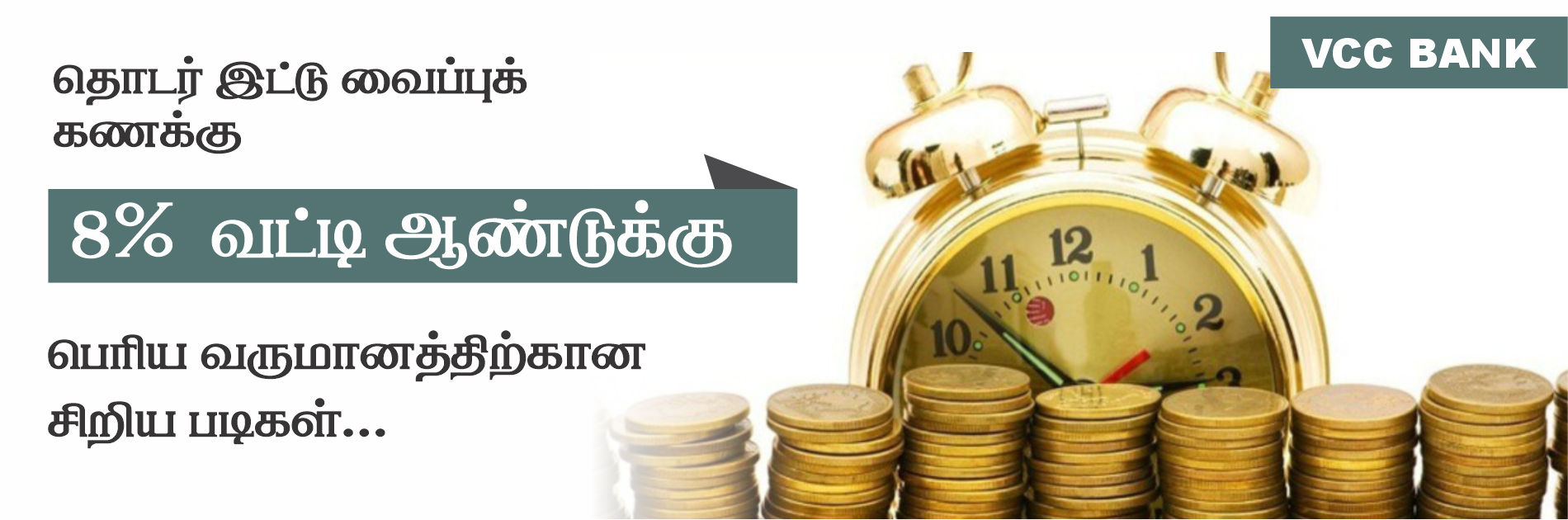 வேலூர் மாவட்ட மத்தியக் கூட்டுறவு வங்கியில் குறைந்த வட்டியில் உடனடியாக நகைக்கடன் வழங்கப்படுகிறது. தேவைப்படுவோர் அருகில் உள்ள வேலூர் மாவட்ட மத்தியக் கூட்டுறவு வங்கியின் கிளைகளை அணுகி பெற்று பயனடையுமாறு அன்புடன் கேட்டுக்கொள்கிறோம். இணைப்பதிவாளர்/மேலாண்மை இயக்குநர், வேலூர் மாவட்ட மத்தியக் கூட்டுறவு வங்கி.,